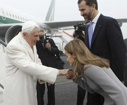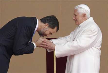 Vuestro afecto hacia España, expresado en tantas ocasiones, es de un gran valor para nosotros. Y los españoles nos sentimos realmente muy honrados de que en los cinco primeros años de Vuestro Pontificado hayáis visitado España por segunda vez. Además, en el mes de agosto del próximo año 2011, tendremos nuevamente el honor de recibiros en Madrid para celebrar la Jornada Mundial de la Juventud. ¡Gracias Santo Padre por todas estas visitas y particularmente por la de hoy y mañana!
