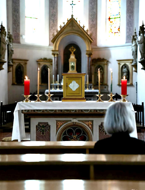 altar, donde el sagrario velaba flanqueado