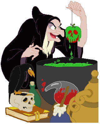 agradecida la manzana, al parecer deliciosa, que la bruja le ofreció.